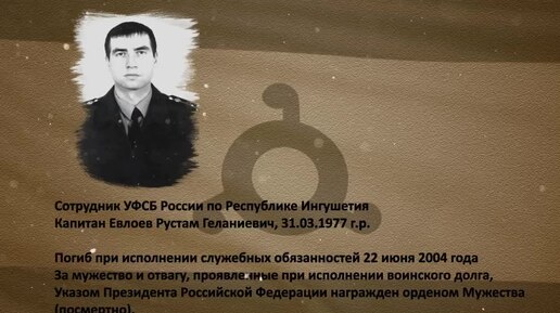 Сотрудник УФСБ России по республике Ингушетия, капитан Евлоев Рустам Геланиевич, 31.03.1977 г.