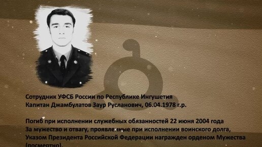 Сотрудник УФСБ России по республике Ингушетия, капитан Джамбулатов Заур Русланович, 06.04.1978 г.