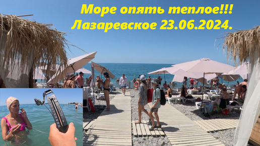 Море опять теплое! Замер на пляже Касабланка! Привет в Нижегородскую обл!🌴ЛАЗАРЕВСКОЕ 23.06.2024🌴