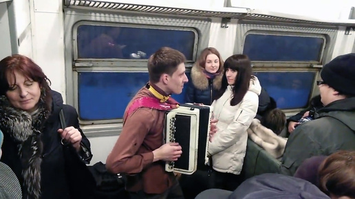 Парень на баяне отжигает в электричке