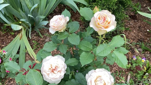 Мои первогодки. Флорибунда Парфюм Киссес и плетистая Олд Голд.