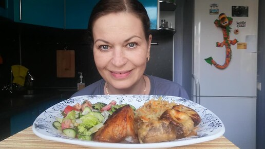 МУКБАНГ КУРИЦА ГРИБЫ ПОД СЫРОМ КАПУСТА САЛАТ ОВОЩНОЙ