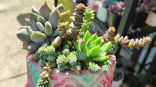 Обзор второй полочки с суккулентами.