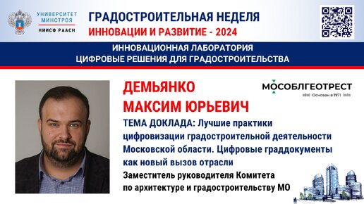 ВИДЕО. Демьянко М.Ю. Лучшие практики цифровизации градостроительной деятельности Московской области