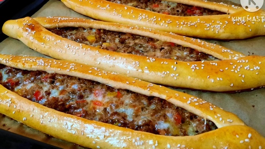 Лепёшки-Лодочки с фаршем и овощами, как Пицца