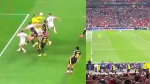 Момент столкновения нападающего сборной Венгрии с вратарем