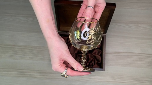 Распаковка эксклюзивного бокала для виски в деревянной шкатулке из массива