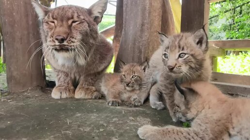 Три очаровательных котенка появились в семье сибирских рысей в Барнаульском зоопарке