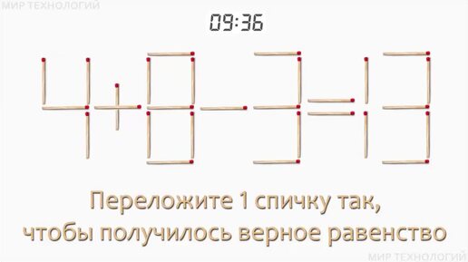 Задача 119. Переложите 1 спичку так, чтобы получилось верное равенство (4+8-3=13)