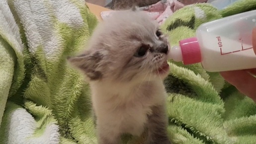 26-дневный котёнок пьёт молоко из соски. Продолжение