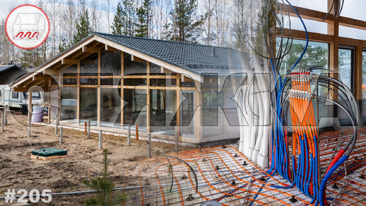 Стяжка, тёплый пол, фахверк. Планировка дома 12*12.