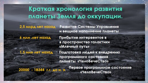Краткая хронология развития планеты Земля до нападения Эбровской Цивилизации