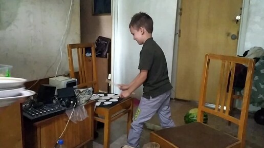Прикольное видео - внук долбит по электронному ударнику. Забавно!