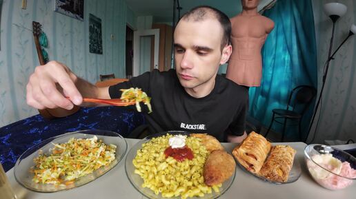 МУКБАНГ НАРЕЗКИ ЛУЧШЕЕ - МАКАРОНЫ / РЫБА - ГОРБУША / КОТЛЕТА / САЛАТ / Mukbang АСМР 25. 06. 2024