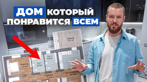 Популярный проект одноэтажного дома. 100 м2, большая кухня-гостиная и 3 спальни