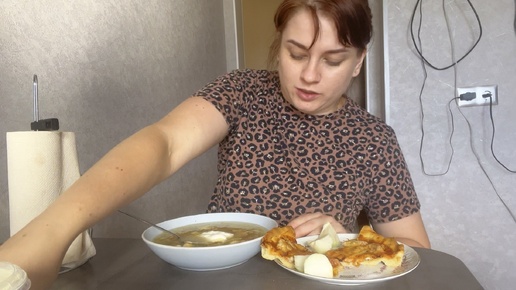 Ужин с опозданием/ МУКБАНГ/ Щи с пиццей / Пицца Домашняя/ Худею без хлеба/Лук в прикуску/