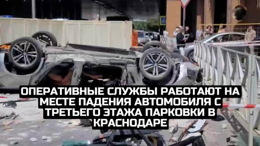 Оперативные службы работают на месте падения автомобиля с третьего этажа парковки в Краснодаре