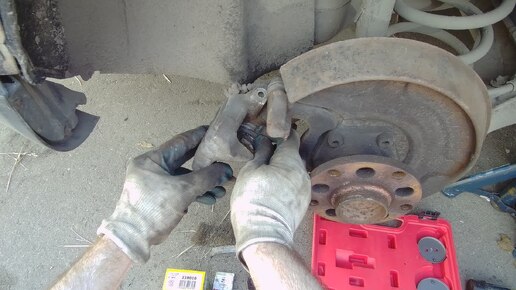 Ауди А6 С5 ремонт тормозов. Замена пыльника заднего тормозного поршня.
