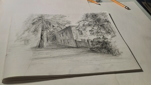 Зарисовка дома. Городской пейзаж карандашом
