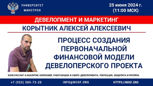 ВИДЕО. Корытник А.А. Процесс создания первоначальной Финансовой модели девелоперского проекта