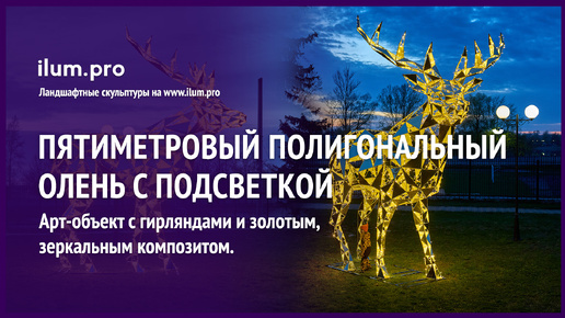 Пятиметровый полигональный олень с подсветкой гирляндами в парке / Айлюм Про