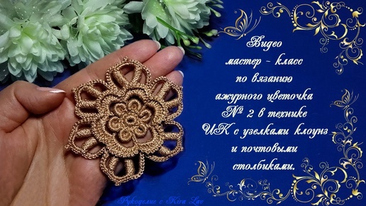 Видео МК по вязанию ажурного цветочка № 2 крючком в технике ИК с узелками клоунз и почтовыми столбиками.