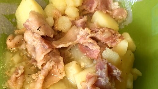 Очень нравится рецепт картофеля с беконом: простой, надо только картофель почистить, из двух ингредиентов, но аппетитный, сочный