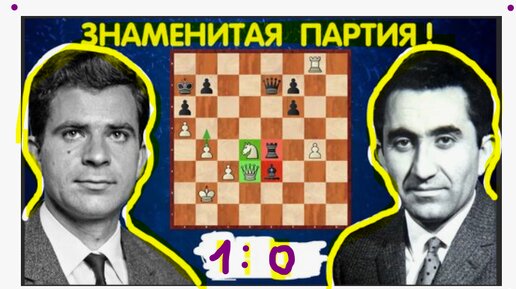 Борис Спасский белыми, с победой против Тиграна Петросяна в чемпионском матче 1969 года. партия известна в народе как "Томление тигра", 1-0