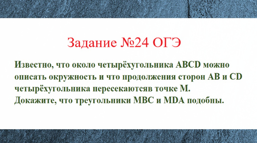 Геометрическая задача на доказательство. Четырехугольник. Задача №6. Разбор задания №24 ОГЭ