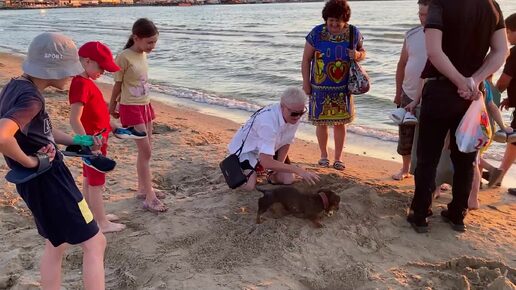 Весёлый пёс на пляже. Этот таксик всем поднял настроение. Анапа. Центральный пляж. Июнь 2024