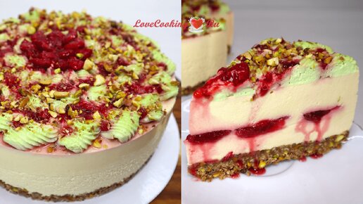 Манговый чизкейк без выпечки с фисташкой, лаймом, малиной