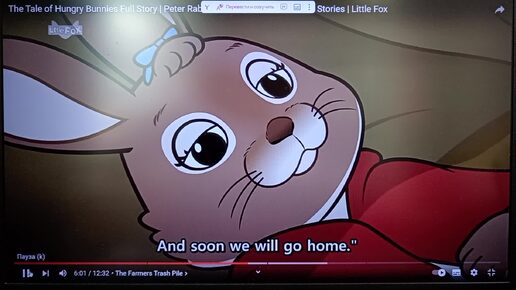 Мультфильм Кролик Питер и его сёстры проголодались и поскакал искать еду