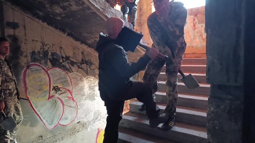 Бой с ножом и лопаткой в каждой руке на лестнице. В. Н. Крючков