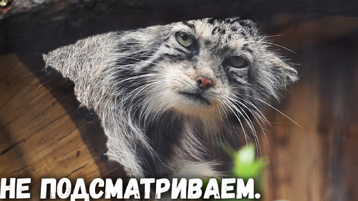 Манул Намика нашла укромное место и следит оттуда за всеми. Ленинградский зоопарк