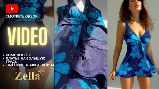 Модный купальник-платье с плавками-шортиками. Синий купальник раздельный. Видеообзор новинок 2024 на Wildberries.