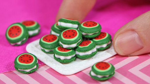 Как слепить печенье макарон арбуз из полимерной глины! Сладости для кукол от Анны Оськиной!