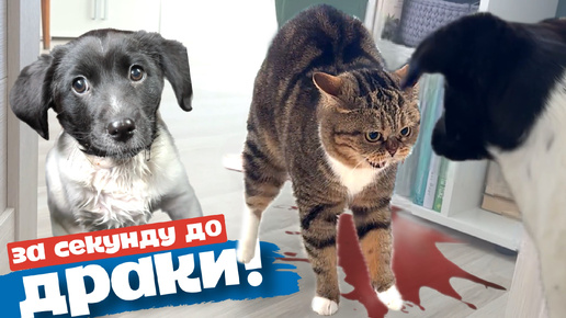 Кошка НАПАЛА на бездомного щенка! Опасное соседство.