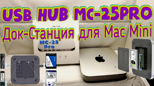 Для Mac Mini USB Hub, Док станция для увеличения Объёма, HDD, SSD, M2 NVME Обзор смотрите на Дзен