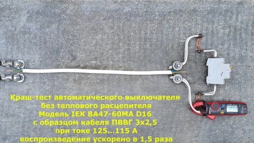 Краш-тест автомата без теплового расцепителя на токе выше номинала