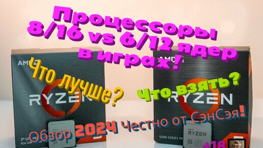 Процессоры 8/16 vs 6/12 ядер в играх! Что лучше? Что взять? Обзор 2024 Честно от СэнСэя!
