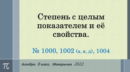 Алгебра 8 класс. Степень с целым показателем. Макарычев. № 1000, 1002 а, в, д, 1004