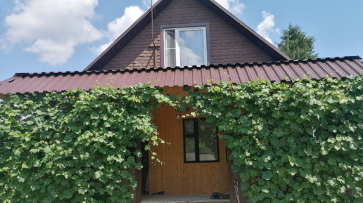 Мичуринский гибрид Амурского винограда сорта 'Северный Чёрный' на нашем крыльце для тени. Июнь 2024