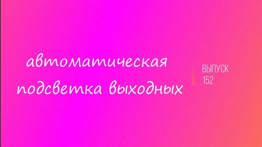 Выпуск 152. Автоматическая подсветка выходных