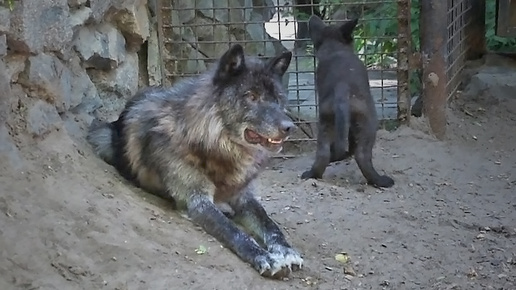 Волчата канадских черных волков делают подкоп в соседний вольер, чтобы познакомиться с белыми волчатами.