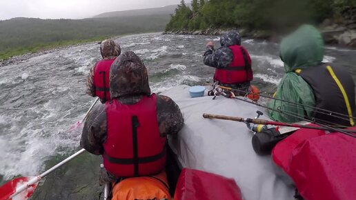 Прохождение I порога, ниже устья руч. Вершинный. Большая вода, вид с катамарана. Река Большая Хадата. Полярный Урал.