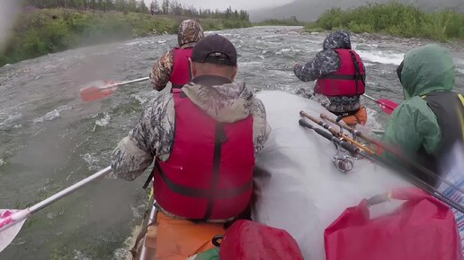 Порог "Гамма" и бурные перекаты в большую воду. Прохождение на катамаране. Река Большая Хадата, Полярный Урал.