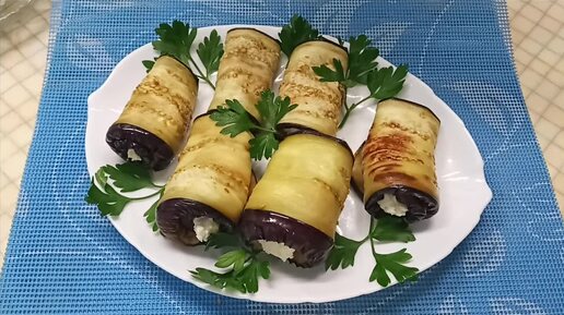 Рулетики из баклажанов с сырной начинкой. Отличная закуска