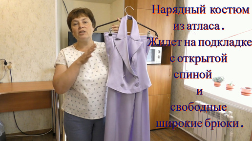 Нарядный костюм из атласа . Жилет на подкладке с открытой спиной и широкие свободные брюки .