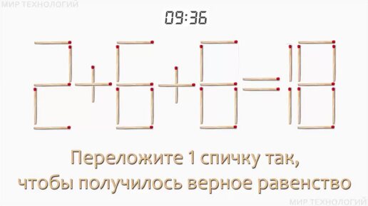 Задача 122. Переложите 1 спичку так, чтобы получилось верное равенство (2+6+6=18)