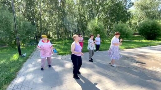 Танцы на "Городской поляне": "Бачата" - простой красивый танец & коллектив "КУРАЖ" группа +60 & Омск Сквер "Городская поляна" 01.07.2024 г.